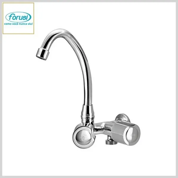 Torneira de Cozinha 3159 C-41 Mvs Parede Bica Móvel Cromado c/Saída LavaLouças - Arejador Fixo, Volante Abs - Forusi
