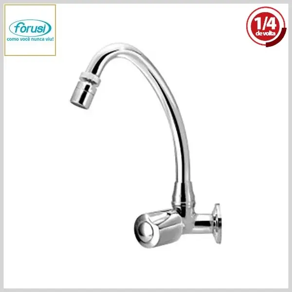 Torneira de Cozinha 3159 C-90 Luxo 1/4Volta Parede Bica Móvel Cromado - Arejador Móvel, Volante Metal - Forusi