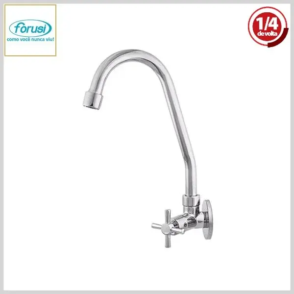 Torneira de Cozinha 3159 Cross 1/4Volta Parede Bica Móvel Cromado - Arejador Fixo, Volante Metal - Forusi