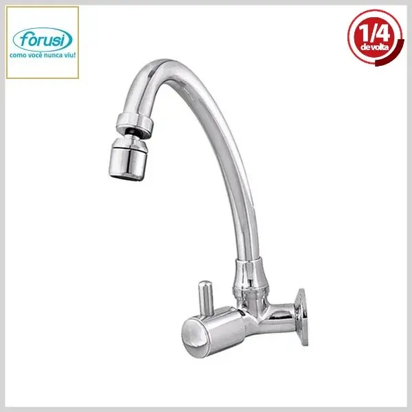 Torneira de Cozinha 3159 Galiza 1/4Volta Parede Bica Móvel Cromado - Arejador Móvel, Volante Metal - Forusi