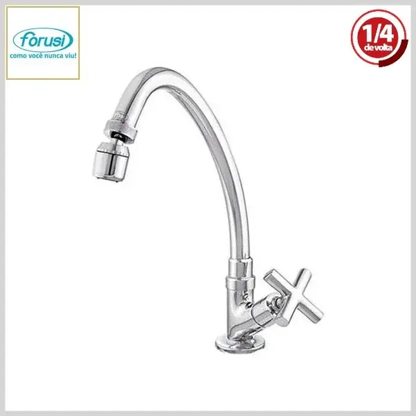 Torneira de Cozinha 3159 Parthenon 1/4Volta Mesa Bica Móvel Cromado - Arejador Móvel, Volante Metal - Forusi