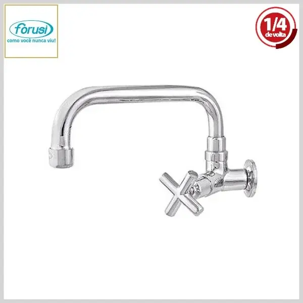 Torneira de Cozinha 3159 Parthenon 1/4Volta Parede Bica Móvel-U Cromado - Arejador Fixo, Volante Metal - Forusi
