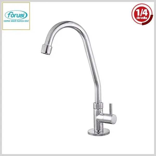 Torneira de Cozinha 3159 RealceJr 1/4Volta Mesa Bica Móvel Cromado - Arejador Fixo, Volante Metal - Forusi