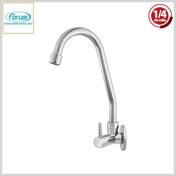 Torneira de Cozinha 3159 RealceJr 1/4Volta Parede Bica Móvel Cromado - Arejador Fixo, Volante Metal - Forusi