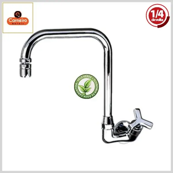 Torneira de Cozinha 3167 C25 Yunnan Parede Bica 90º Móvel 1/4Volta Cromado - Arejador Móvel, Volante Metal - Carneiro Metais