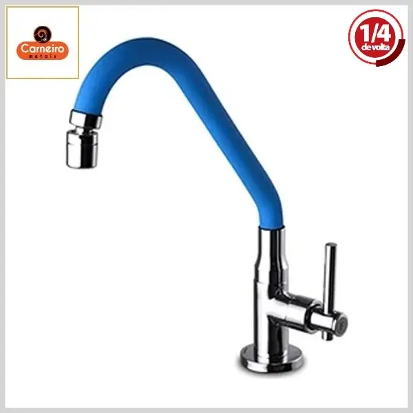 Torneira de Cozinha 4024 C61 Collor Mesa Bica Alta Móvel 1/4Volta Blue/Cromado - Arejador Móvel, Volante Metal - Carneiro Metais
