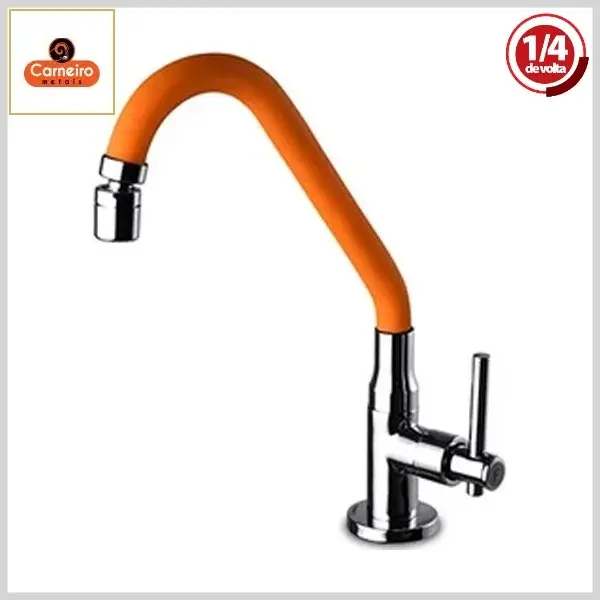 Torneira de Cozinha 4024 C61 Collor Mesa Bica Alta Móvel 1/4Volta Orange/Cromado - Arejador Móvel, Volante Metal - Carneiro Metais
