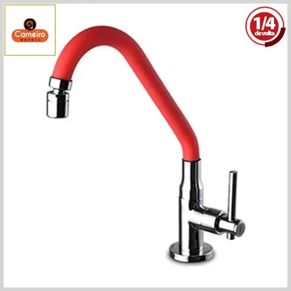 Torneira de Cozinha 4024 C61 Collor Mesa Bica Alta Móvel 1/4Volta Red/Cromado - Arejador Móvel, Volante Metal - Carneiro Metais