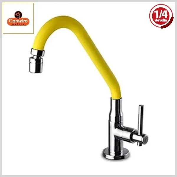 Torneira de Cozinha 4024 C61 Collor Mesa Bica Alta Móvel 1/4Volta Yellow/Cromado - Arejador Móvel, Volante Metal - Carneiro Metais