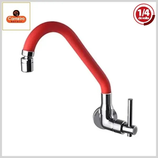 Torneira de Cozinha 4169 C61 Collor Parede Bica Alta Móvel 1/4Volta Red/Cromado - Arejador Móvel, Volante Metal - Carneiro Metais