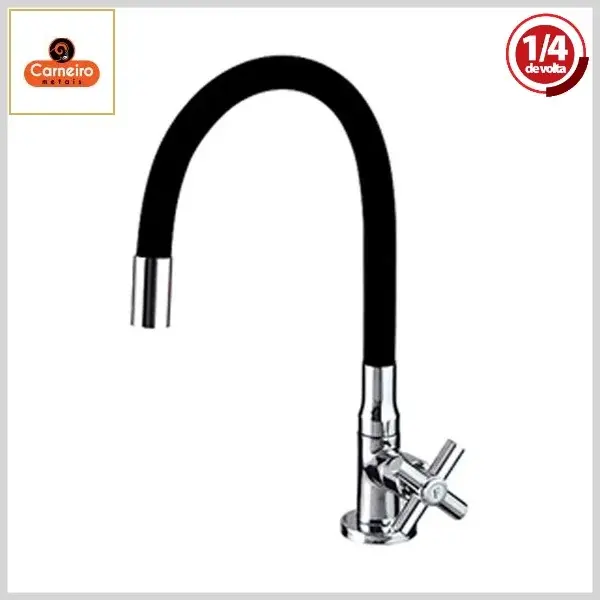 Torneira de Cozinha 5068 C76 FlexCor Mesa Bica Alta Flexível 1/4Volta Black/Cromado - Arejador Fixo, Volante Metal - Carneiro Metais