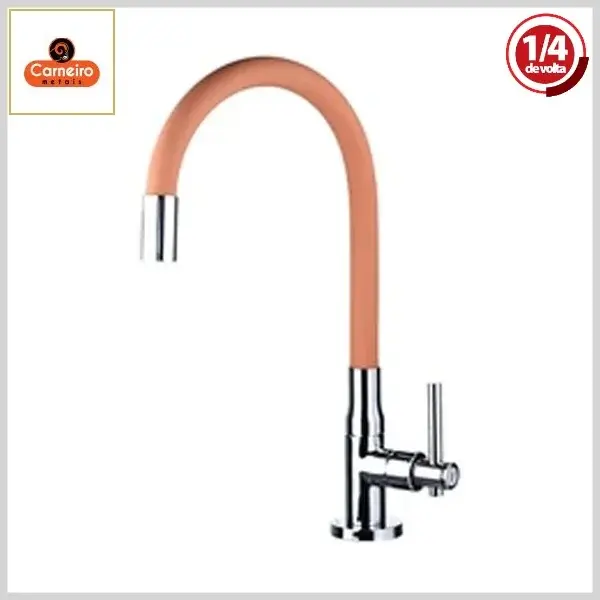 Torneira de Cozinha 5126 C76 FlexCor Mesa Bica Alta Flexível 1/4Volta Orange/Cromado - Arejador Fixo, Volante Metal - Carneiro Metais