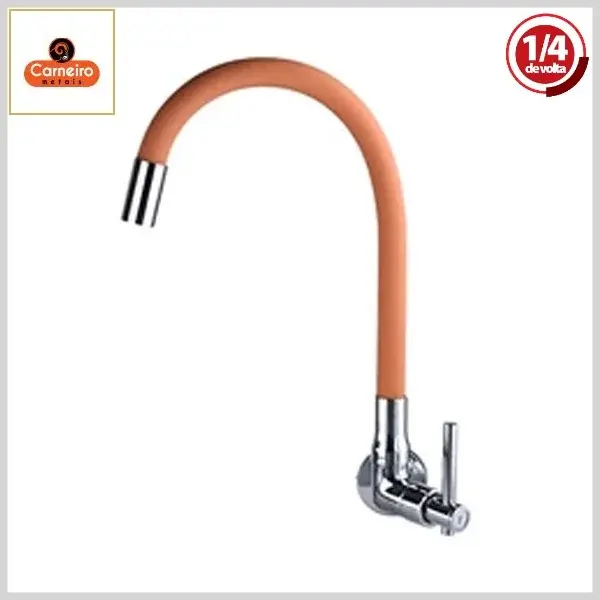 Torneira de Cozinha 5166 C76 FlexCor Parede Bica Alta Flexível 1/4Volta Orange/Cromado - Arejador Fixo, Volante Metal - Carneiro Metais