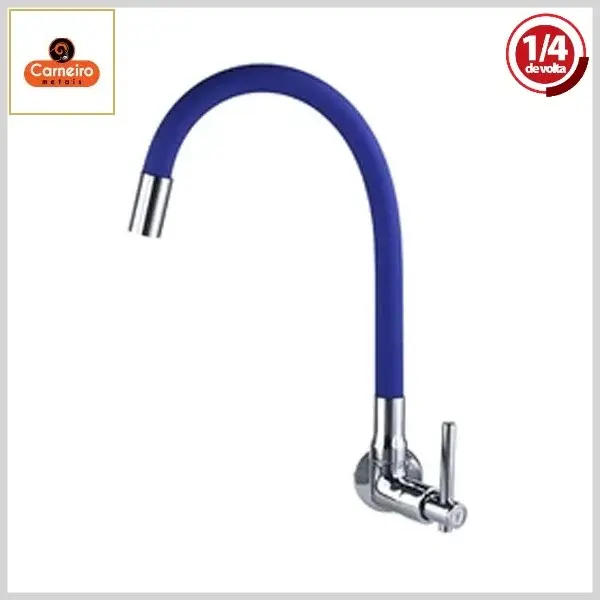 Torneira de Cozinha 5167 C76 FlexCor Parede Bica Alta Flexível 1/4Volta Blue/Cromado - Arejador Fixo, Volante Metal - Carneiro Metais
