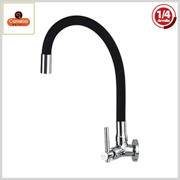 Torneira de Cozinha 5168 C76 FlexCor Parede Bica Alta Flexível 1/4Volta Black/Cromado - Arejador Fixo, Volante Metal - Carneiro Metais