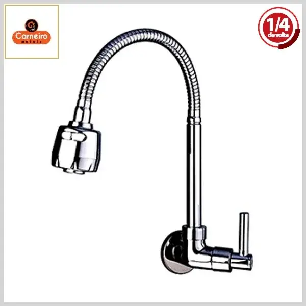 Torneira de Cozinha 7268 Gourmet Parede Bica Flexível Móvel 1/4Volta Cromado - Jato Regulável, Volante Metal - Carneiro Metais