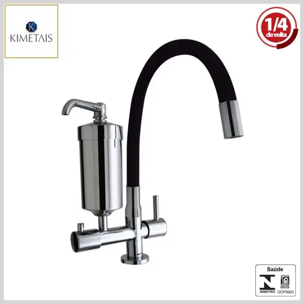 Torneira de Cozinha c/Filtro 1159 C58 Vitacor DelicattaSlim Mesa Bica Flexível 1/4Volta Black/Cromado - Arejador Fixo, Volante Metal - Kimetais