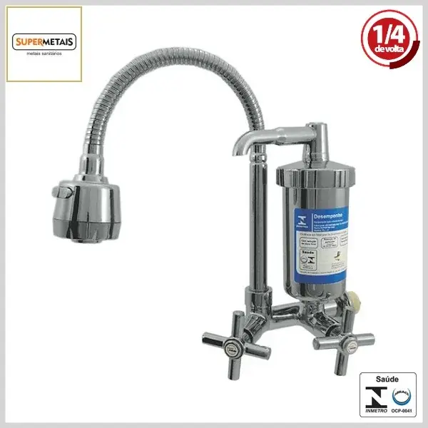 Torneira de Cozinha c/Filtro 1189 C32 Gourmet Parede Bica Flexível Cromada - Vedação ¼Volta, Saida c/Regulador - Supermetais