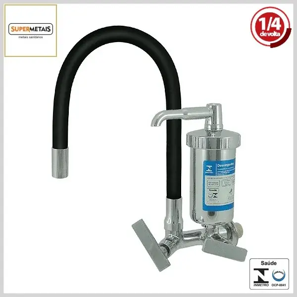 Produto com corpo e volante em metal cromado, bica colorida e filtro em plástico Abs cromado, sendo indicado para uso em pias de cozinhas, churrasqueiras e similares. Possui entrada em 1/2" ou 3/4" com o uso de adaptador (fornecido junto com o produto) e sistema de vedação 1/4Volta Mvc cerâmico.