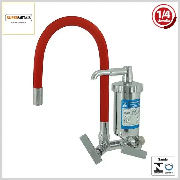 Torneira de Cozinha c/Filtro 2060 C29 Color Parede Bica Flexível Vermelha/Cromada - Vedação ¼Volta, Saída c/Arejador - Supermetais