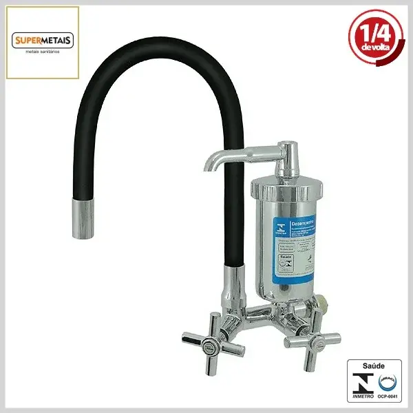 Produto com corpo e volante em metal cromado, bica colorida e filtro em plástico Abs cromado, sendo indicado para uso em pias de cozinhas, churrasqueiras e similares. Possui entrada em 1/2" ou 3/4" com o uso de adaptador (fornecido junto com o produto) e sistema de vedação 1/4Volta Mvc cerâmico.