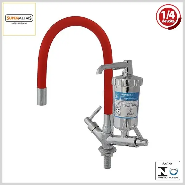 Torneira de Cozinha c/Filtro 2070 C34 Color Mesa Bica Flexível Vermelha/Cromada - Vedação ¼Volta, Saída c/Arejador - Supermetais