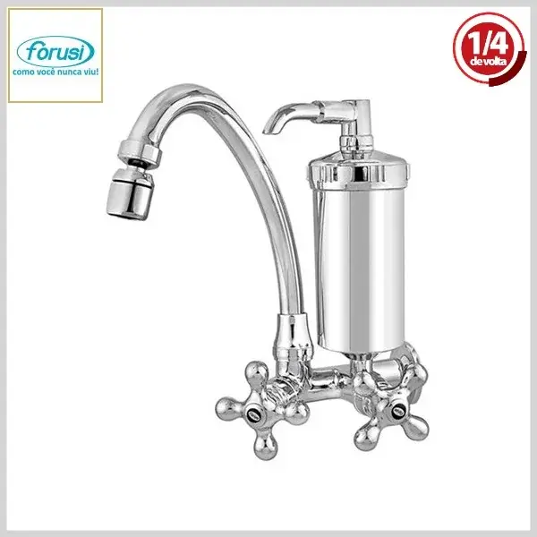 Torneira de Cozinha c/Filtro 2172 BelleEpoque 1/4Volta Parede Bica Móvel Cromado - Arejador Móvel, Volante Metal - Forusi