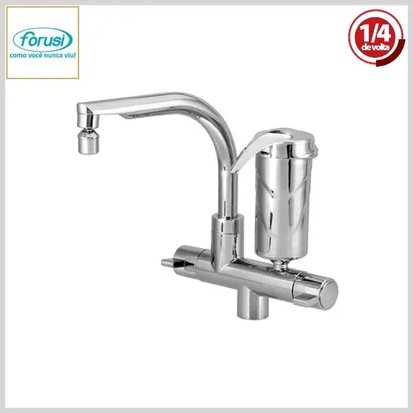 Torneira de Cozinha c/Filtro 2172 DeLuxe 1/4Volta Mesa Bica Móvel Cromado - Arejador Móvel, Volante Metal - Forusi