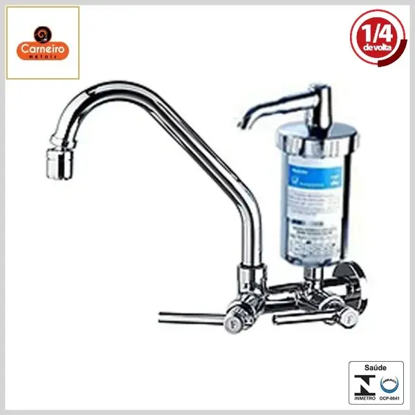 Torneira de Cozinha c/Filtro 2174 C61 Somalis Parede Bica Alta Móvel 1/4Volta Cromado - Arejador Móvel, Filtro Abs - Carneiro Metais