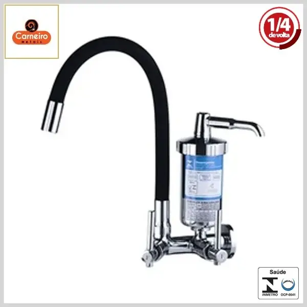 Torneira de Cozinha c/Filtro 2187 C61 FlexColor Parede Bica Flexível 1/4Volta Black/Cromado - Arejador Fixo, Filtro Abs - Carneiro Metais