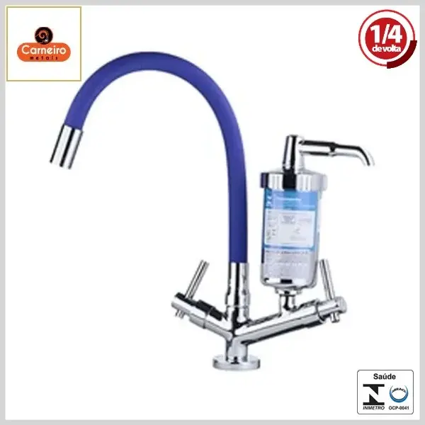 Torneira de Cozinha c/Filtro 2197 C61 FlexColor Mesa Bica Flexível 1/4Volta Blue/Cromado - Arejador Fixo, Filtro Abs - Carneiro Metais