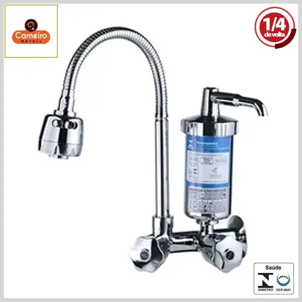 Torneira de Cozinha c/Filtro Abs 2186 C50 Gourmet Parede Bica Flexível 1/4Volta Cromado - Jato Regulável, Volante Metal - Carneiro Metais