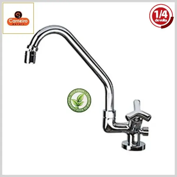 Torneira de Cozinha c/Saída Filtro 6024 C25 Yunnan Mesa Bica Alta Móvel 1/4Volta Cromado - Arejador Móvel, Volante Metal - Carneiro Metais