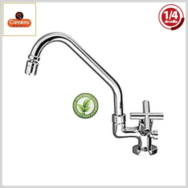 Torneira de Cozinha c/Saída Filtro 6024 C64 Border Mesa Bica Alta Móvel 1/4Volta Cromado - Arejador Móvel, Volante Metal - Carneiro Metais
