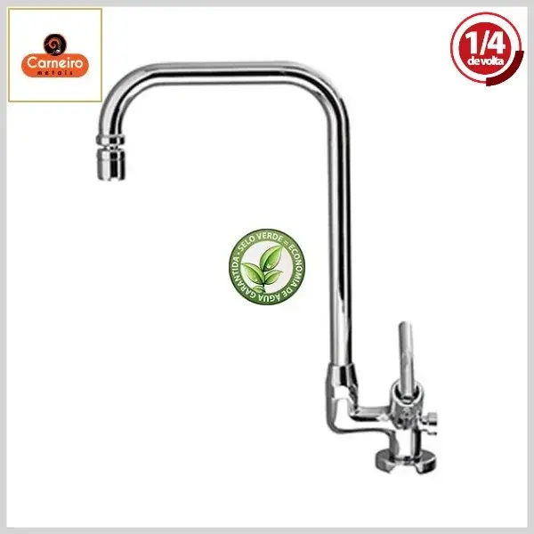 Torneira de Cozinha c/Saída Filtro 6027 C62 Boer Mesa Bica 90º Móvel 1/4Volta Cromado - Arejador Móvel, Volante Metal - Carneiro Metais