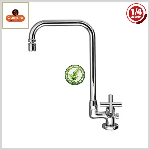 Torneira de Cozinha c/Saída Filtro 6027 C64 Border Mesa Bica 90º Móvel 1/4Volta Cromado - Arejador Móvel, Volante Metal - Carneiro Metais