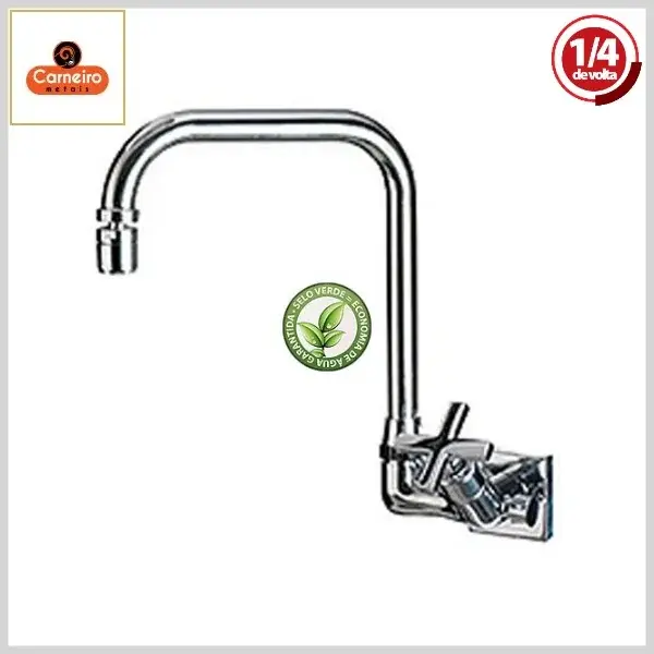 Torneira de Cozinha c/Saída Filtro 6167 C56 Bovska Parede Bica 90º Móvel 1/4Volta Cromado - Arejador Móvel, Volante Metal - Carneiro Metais