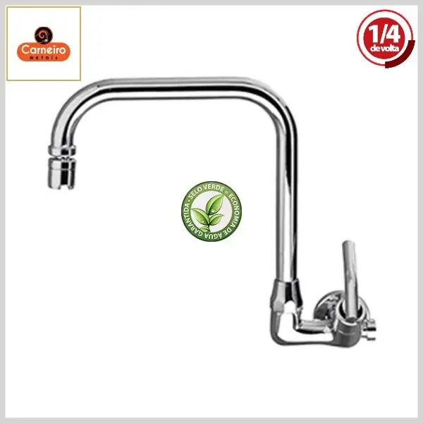 Torneira de Cozinha c/Saída Filtro 6167 C62 Boer Parede Bica 90º Móvel 1/4Volta Cromado - Arejador Móvel, Volante Metal - Carneiro Metais