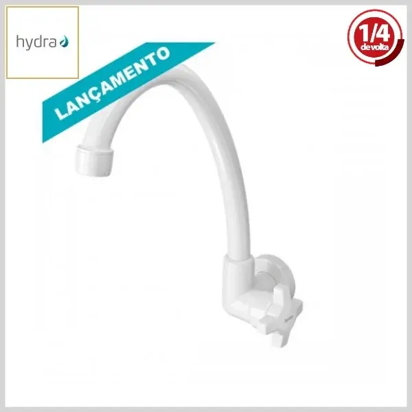 Torneira de Cozinha Hydramax Parede Bica Alta (Branco) - 1/2 e 3/4 pol - ¼ Volta - Hydra-Corona