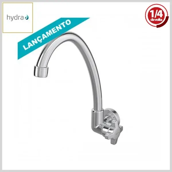 Torneira de Cozinha Hydramax Parede Bica Alta (Cromado) - 1/2 e 3/4 pol - ¼ Volta - Hydra-Corona