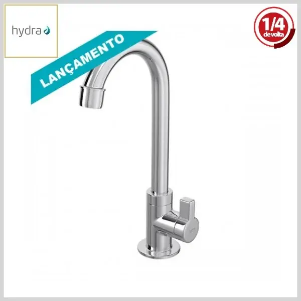 Torneira de Cozinha Hydraplus Bancada Bica Alta (Cromado) - 1/2 pol - ¼ Volta - Hydra-Corona