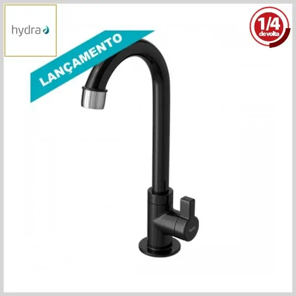 Torneira de Cozinha Hydraplus Bancada Bica Alta (Preto) - 1/2 pol - ¼ Volta - Hydra-Corona