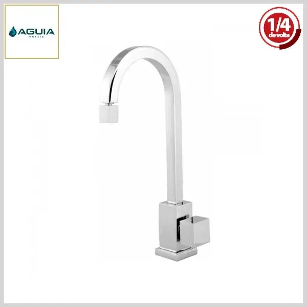 Torneira de Cozinha Quadrat 7003 Mesa Bica Alta (Cromado) - 1/2 pol - ¼ Volta - Águia Metais