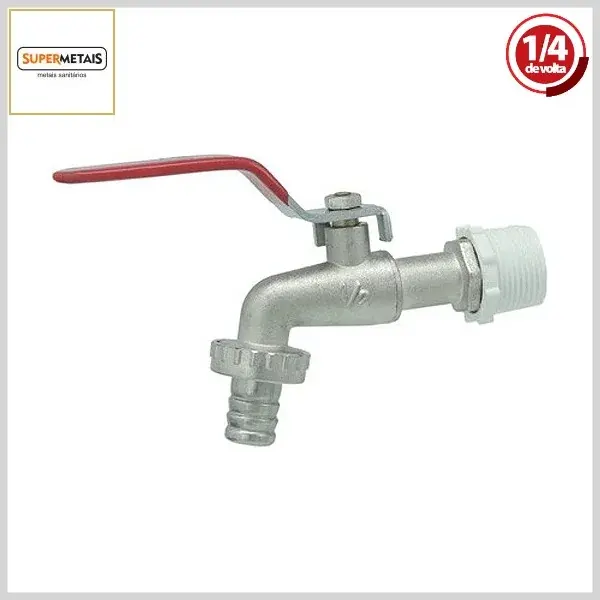 Produto com corpo e alavanca em metal cromado/pintado, sendo indicado para uso em pontos de jardins, quintais e similares. Possui entrada em 1/2" ou 3/4" com o uso de adaptador (fornecido junto com o produto), saída com rosca e ponteira de 1/2" e sistema de vedação 1/4Volta por esfera metálica.