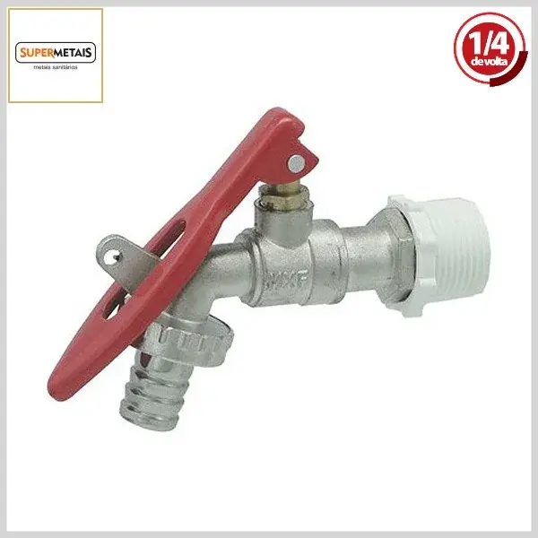 Produto com corpo e alavanca (com porta cadeado) em metal cromado/pintado, sendo indicado para uso em pontos de jardins, quintais e similares. Possui entrada em 1/2" ou 3/4" com o uso de adaptador (fornecido junto com o produto), saída com rosca e ponteira de 1/2" e sistema de vedação 1/4Volta por esfera metálica.