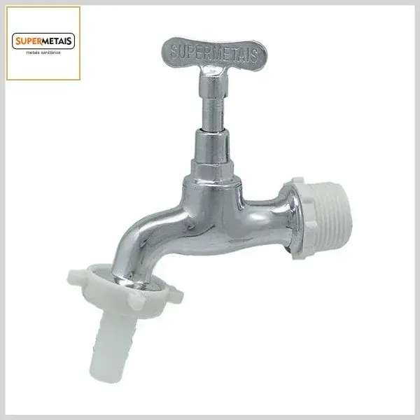 Produto com corpo e volante em metal cromado, sendo indicado para uso em pontos de jardins, quintais e similares. Possui entrada em 1/2" ou 3/4" com o uso de adaptador (fornecido junto com o produto), saída com rosca e ponteira de 1/2" e sistema de vedação M18 substituível.