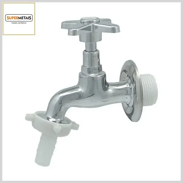 Produto com corpo e volante em metal cromado, sendo indicado para uso em pontos de jardins, quintais e similares. Possui entrada em 1/2" ou 3/4" com o uso de adaptador (fornecido junto com o produto), saída com rosca e ponteira de 1/2" e sistema de vedação M18 substituível.