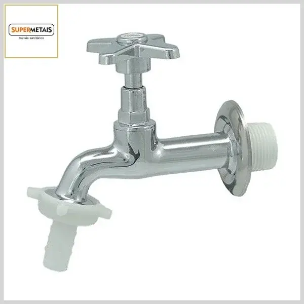 Produto com corpo em metal e volante em plástico Abs cromado, sendo indicado para uso em pontos de jardins, quintais e similares. Possui entrada em 1/2" ou 3/4" com o uso de adaptador (fornecido junto com o produto), saída com rosca e ponteira de 1/2" e sistema de vedação M18 substituível.