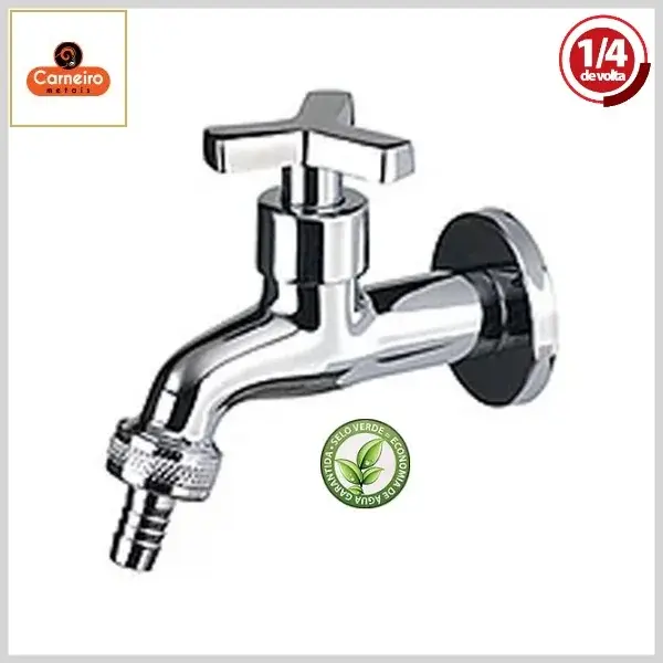 Torneira de Jardim 1130 C25 Yunnan Parede Luxo 1/4Volta Cromado - Saída c/Bico, Volante Metal - Carneiro Metais