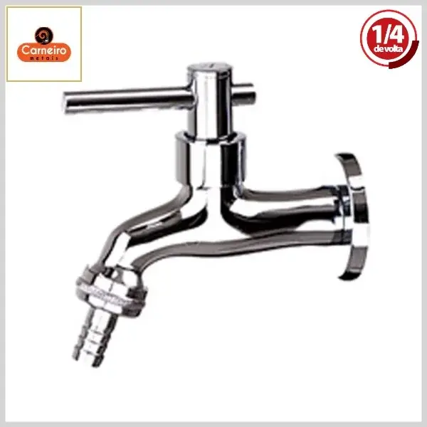Torneira de Jardim 1130 C61 Somalis Parede Luxo 10cm 1/4Volta Cromado - Saída c/Bico, Volante Metal - Carneiro Metais